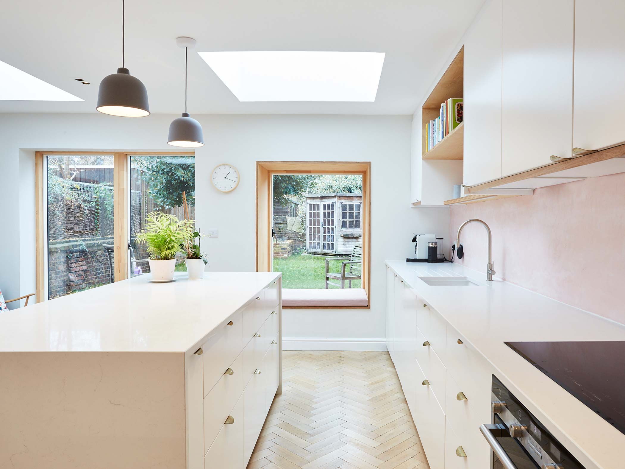 An extension on the rear of the house creates a lovely open plan kitchen/dining space with room for the whole family.